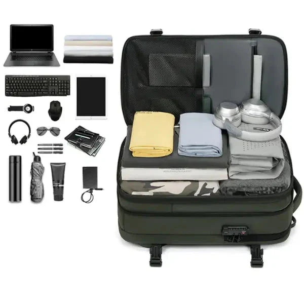 - Extras: Fechadura aprovada pela TSA, bolso antifurto, mini bomba de ar gratuita, organizadores internos.